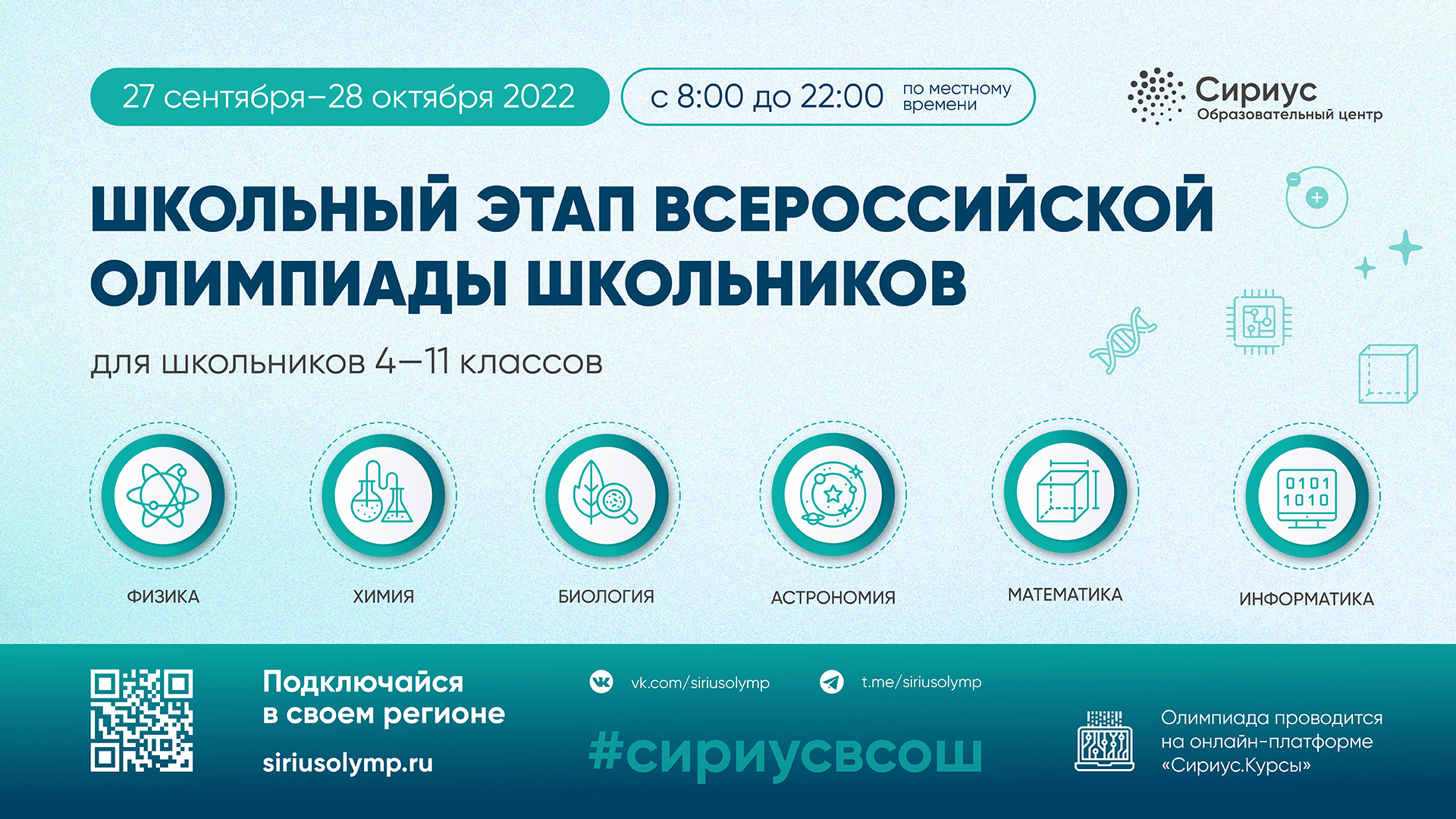 Школьный этап ВОШ по Химии состоится 06.10.2022 г.дистанционно на платформе Сириус