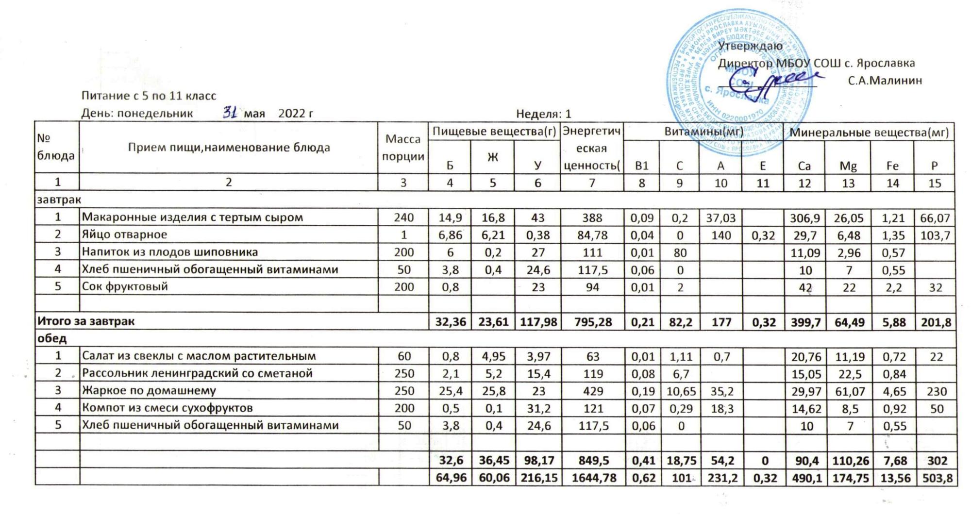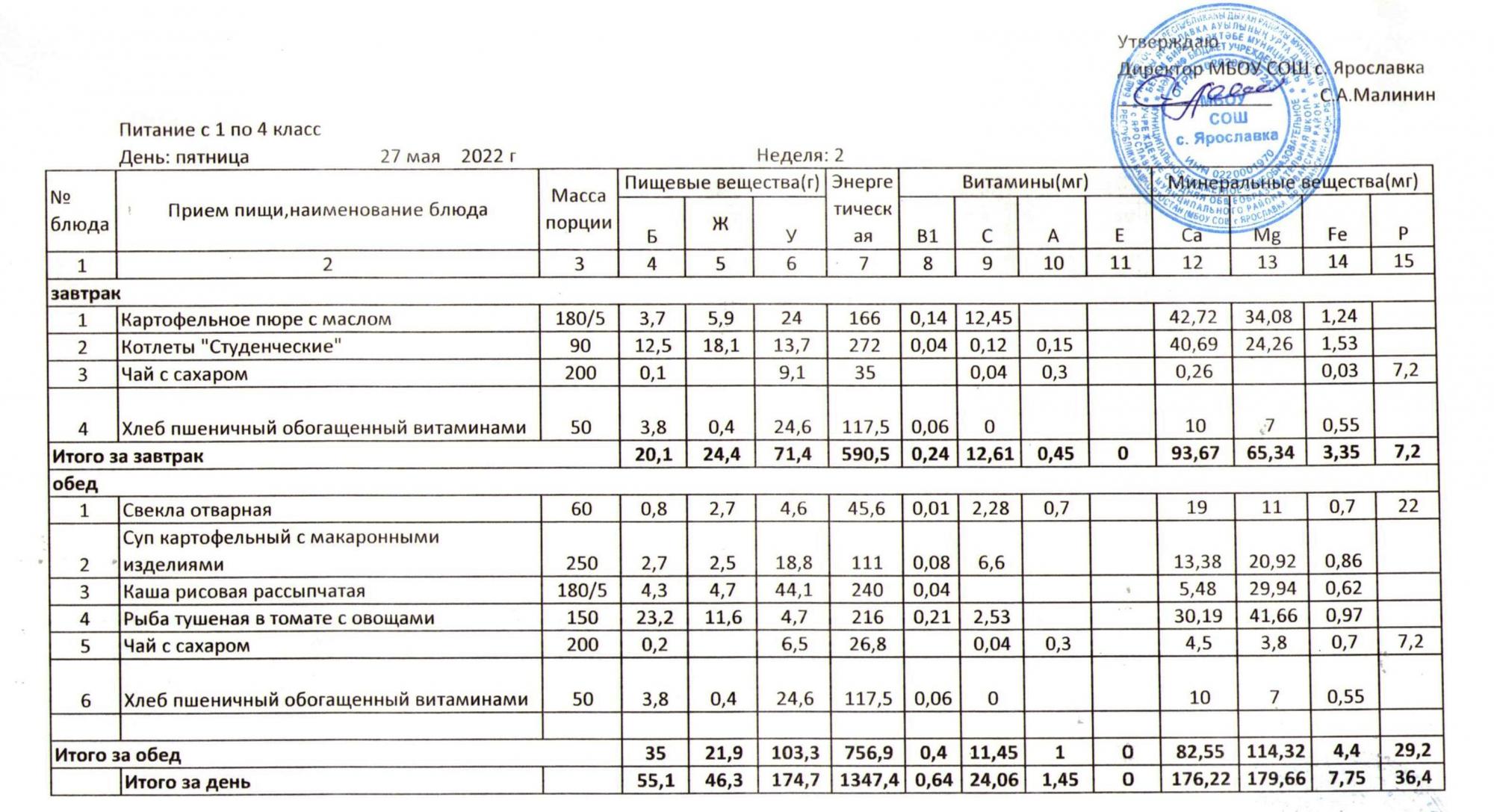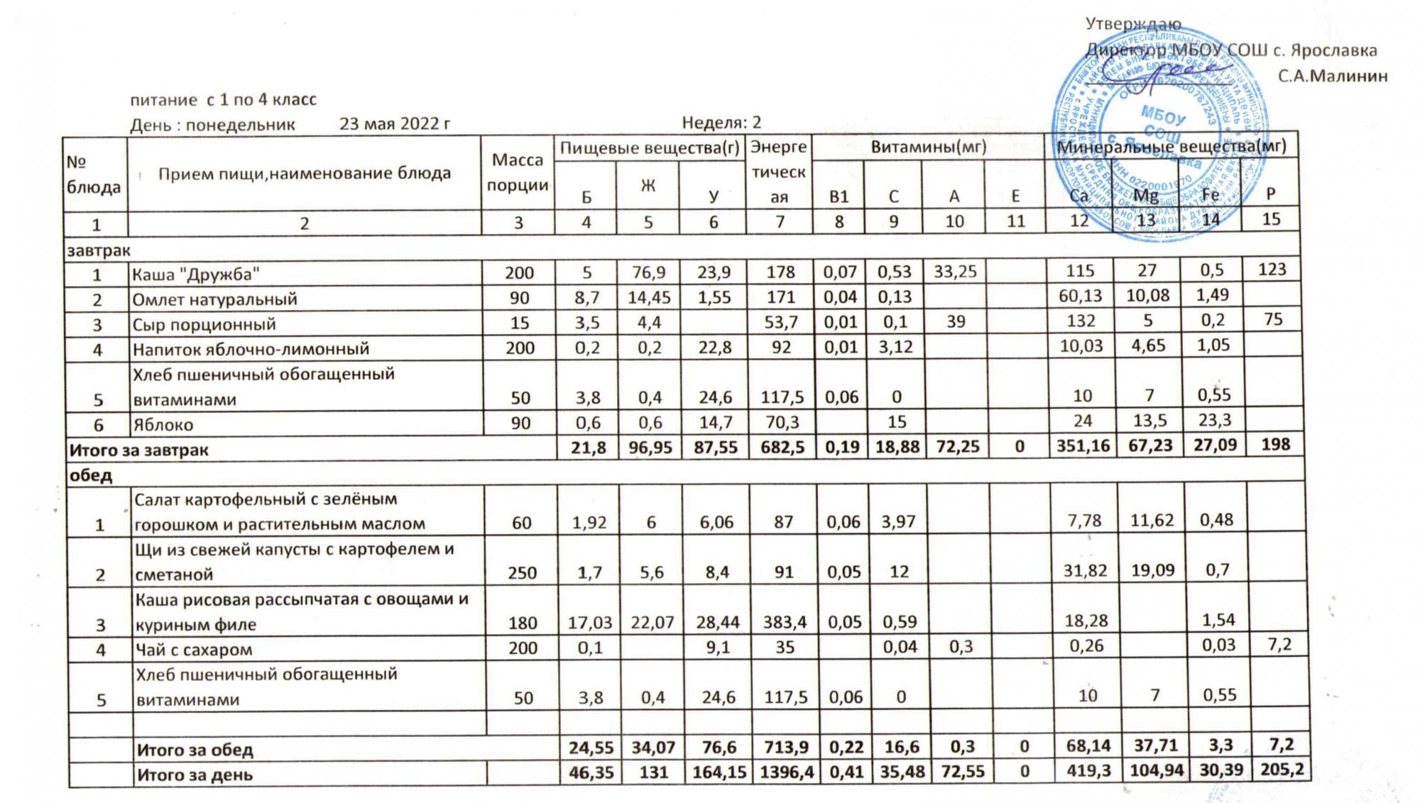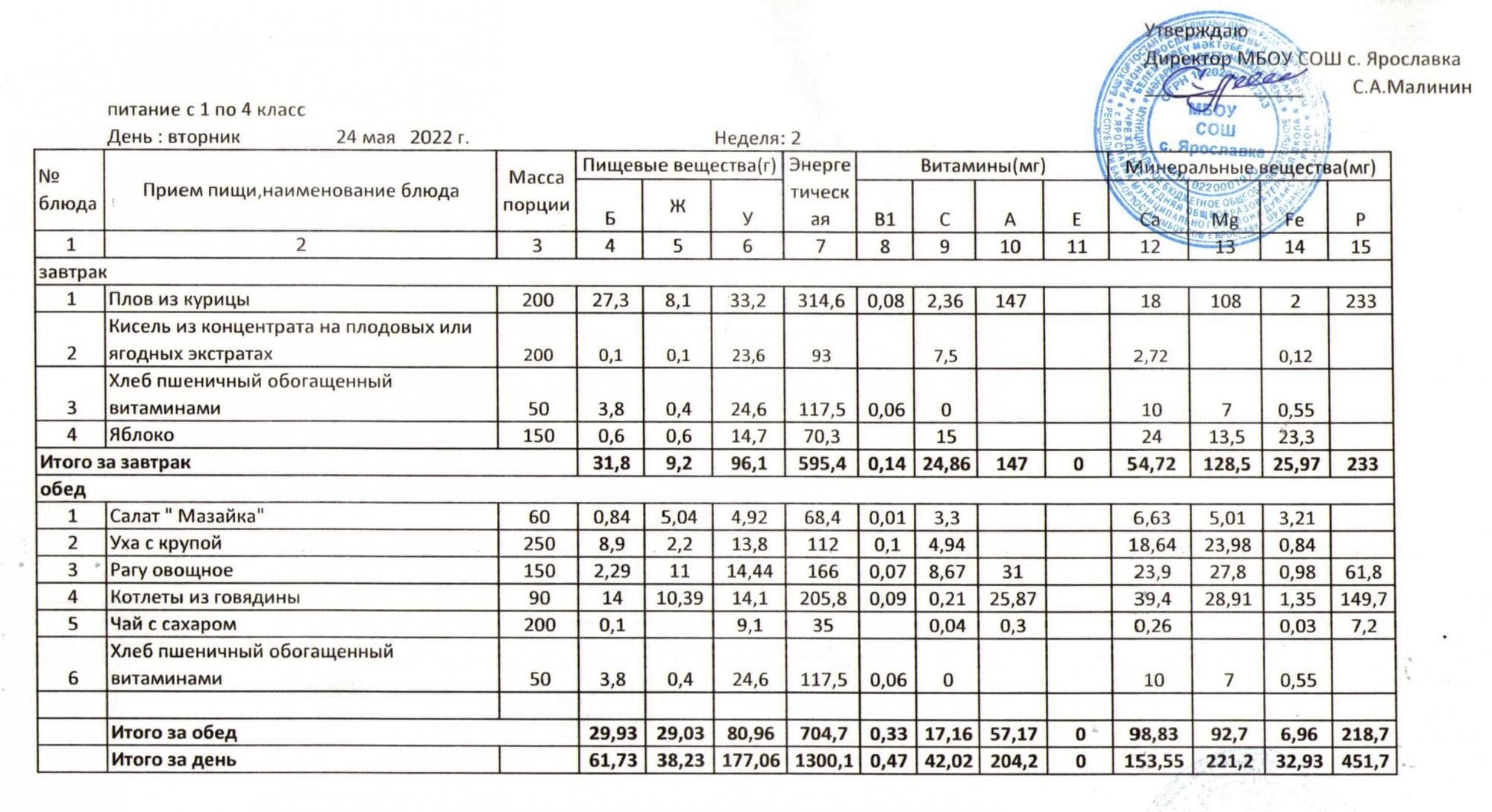 Учебный план ФМБОУ СОШ с.Ярославка в с.Сальёвка