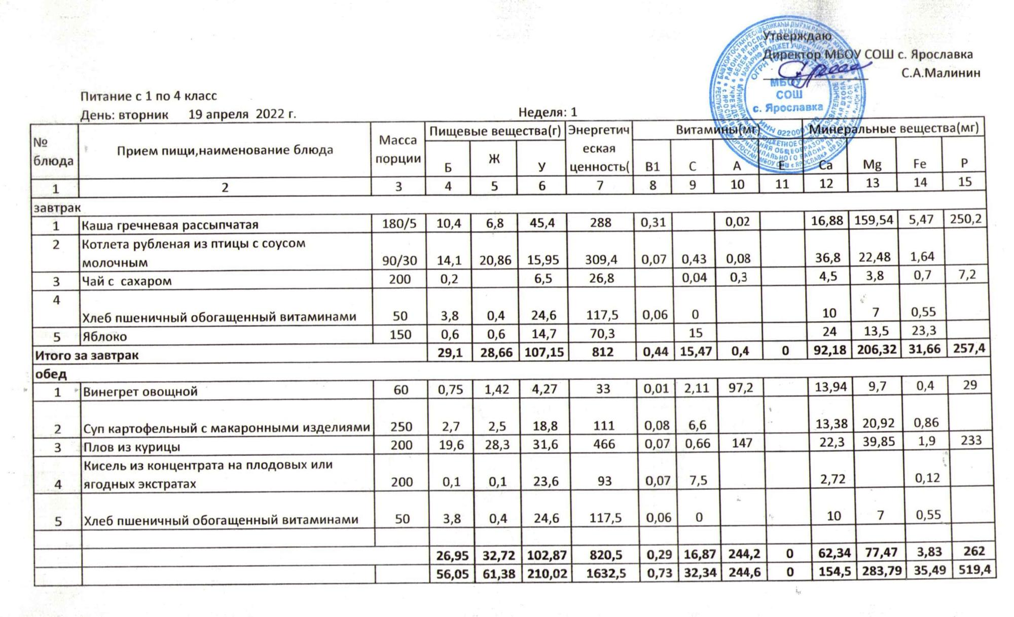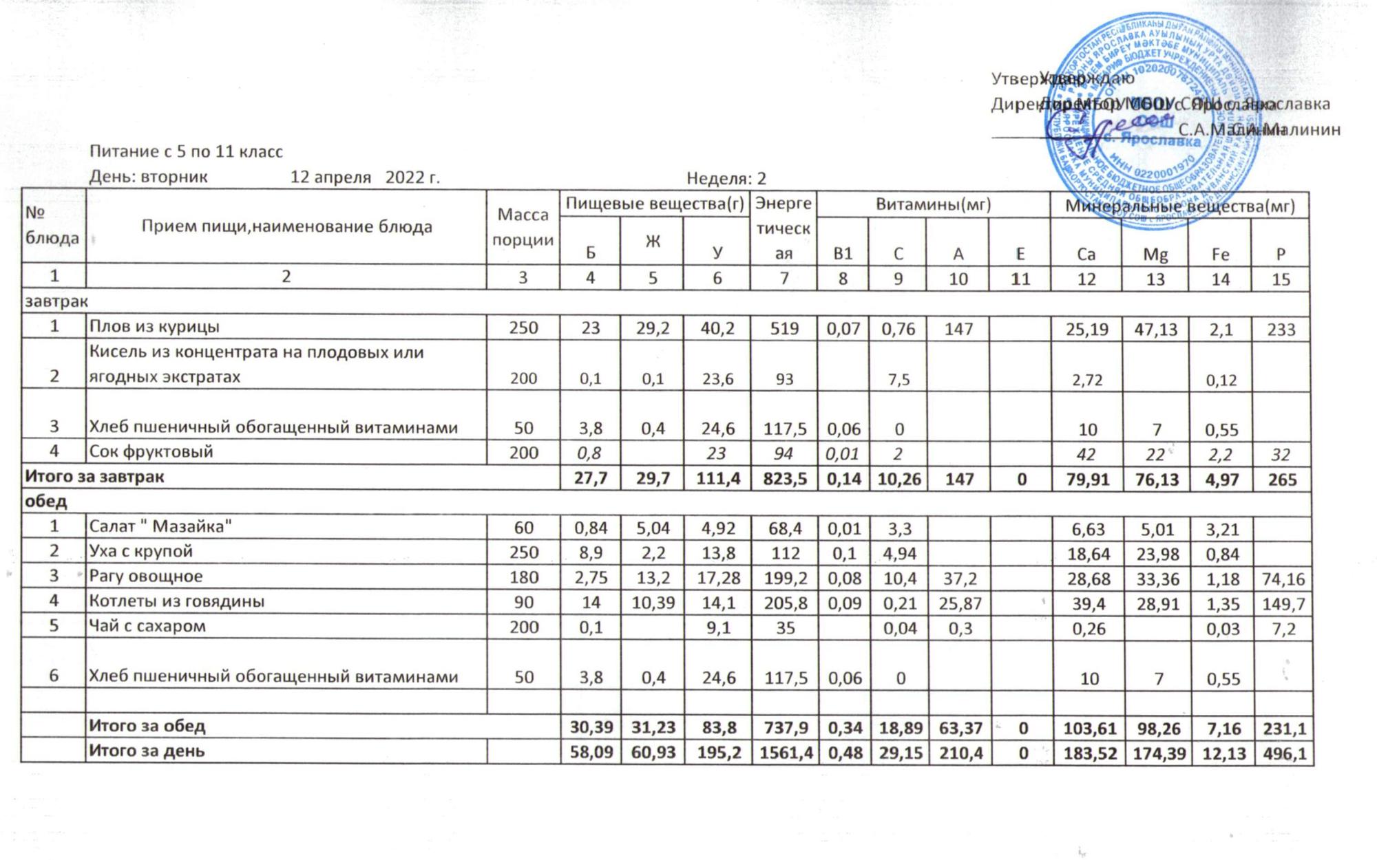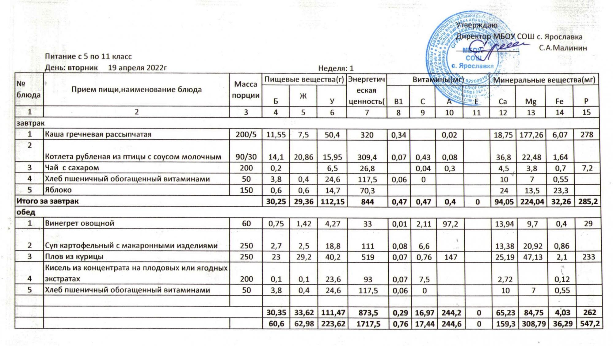 Учебный план ФМБОУ СОШ с.Ярославка в с.Сальёвка