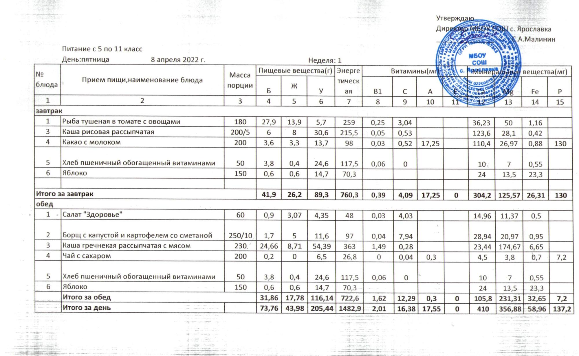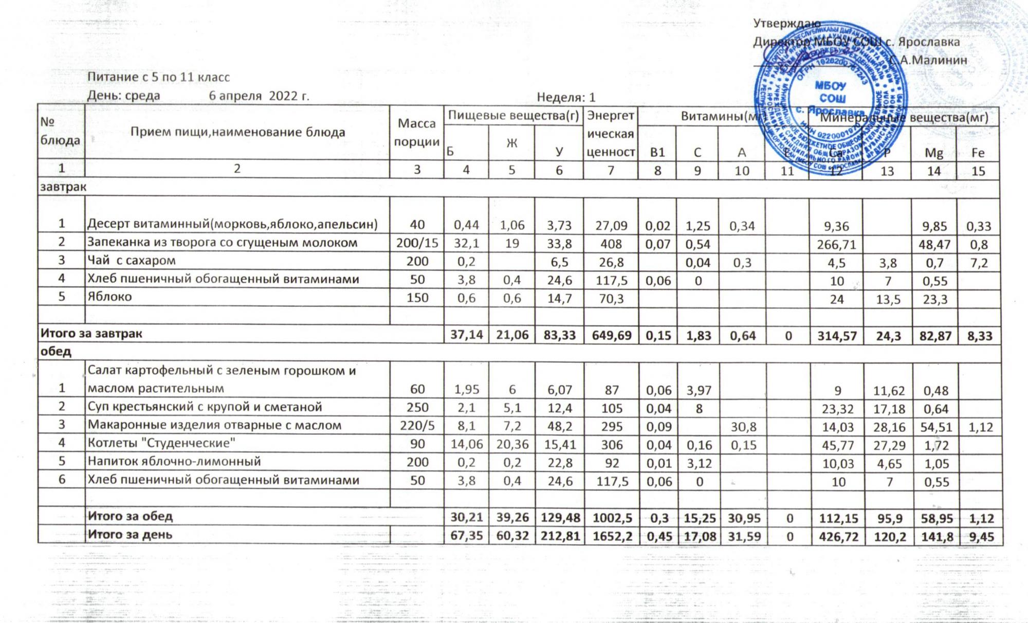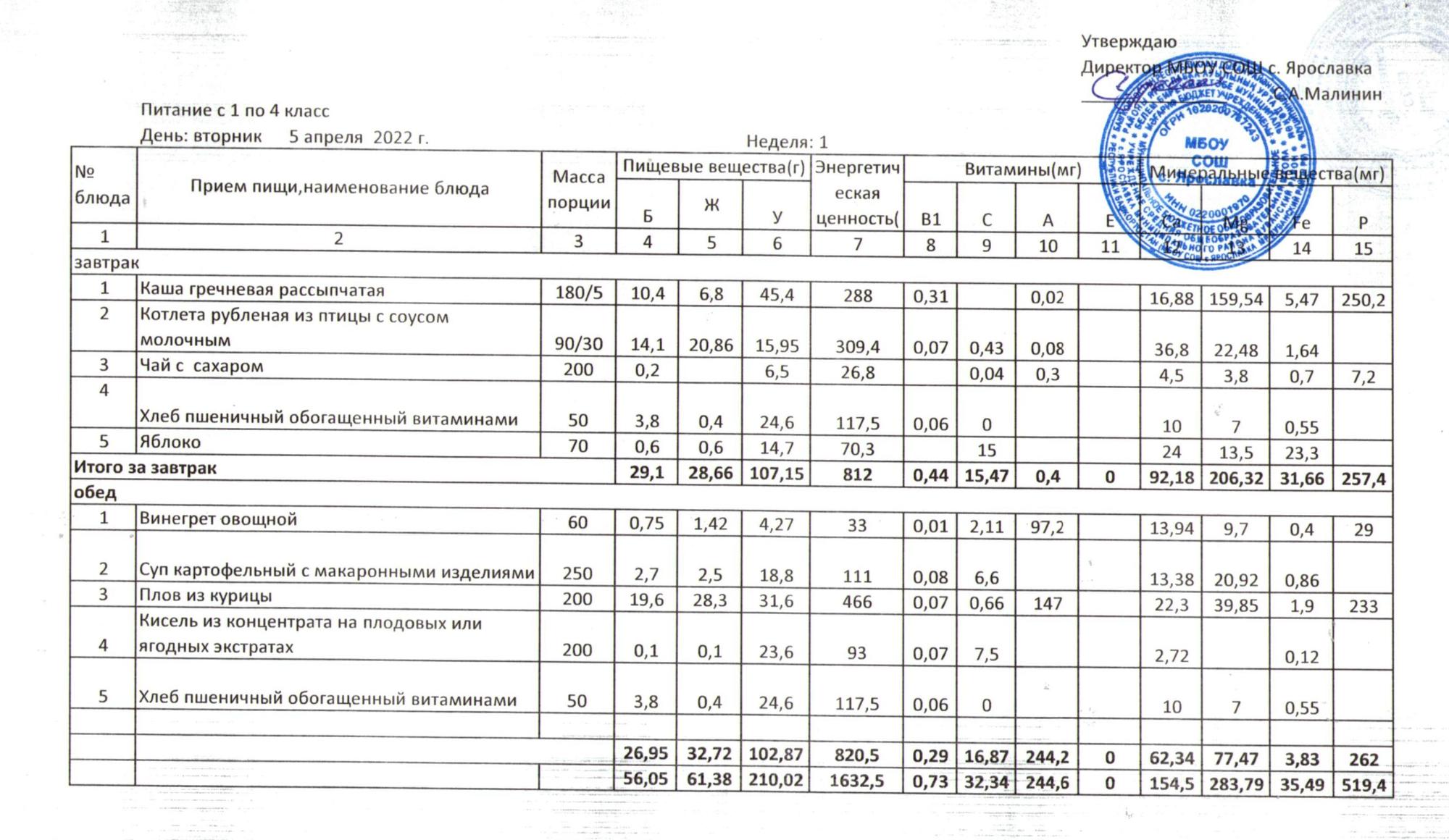 Учебный план ФМБОУ СОШ с.Ярославка в с.Сальёвка