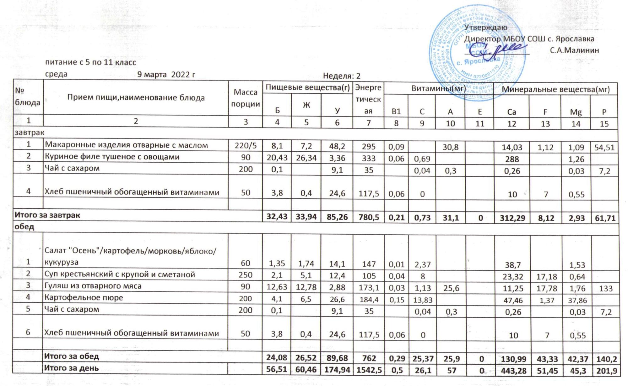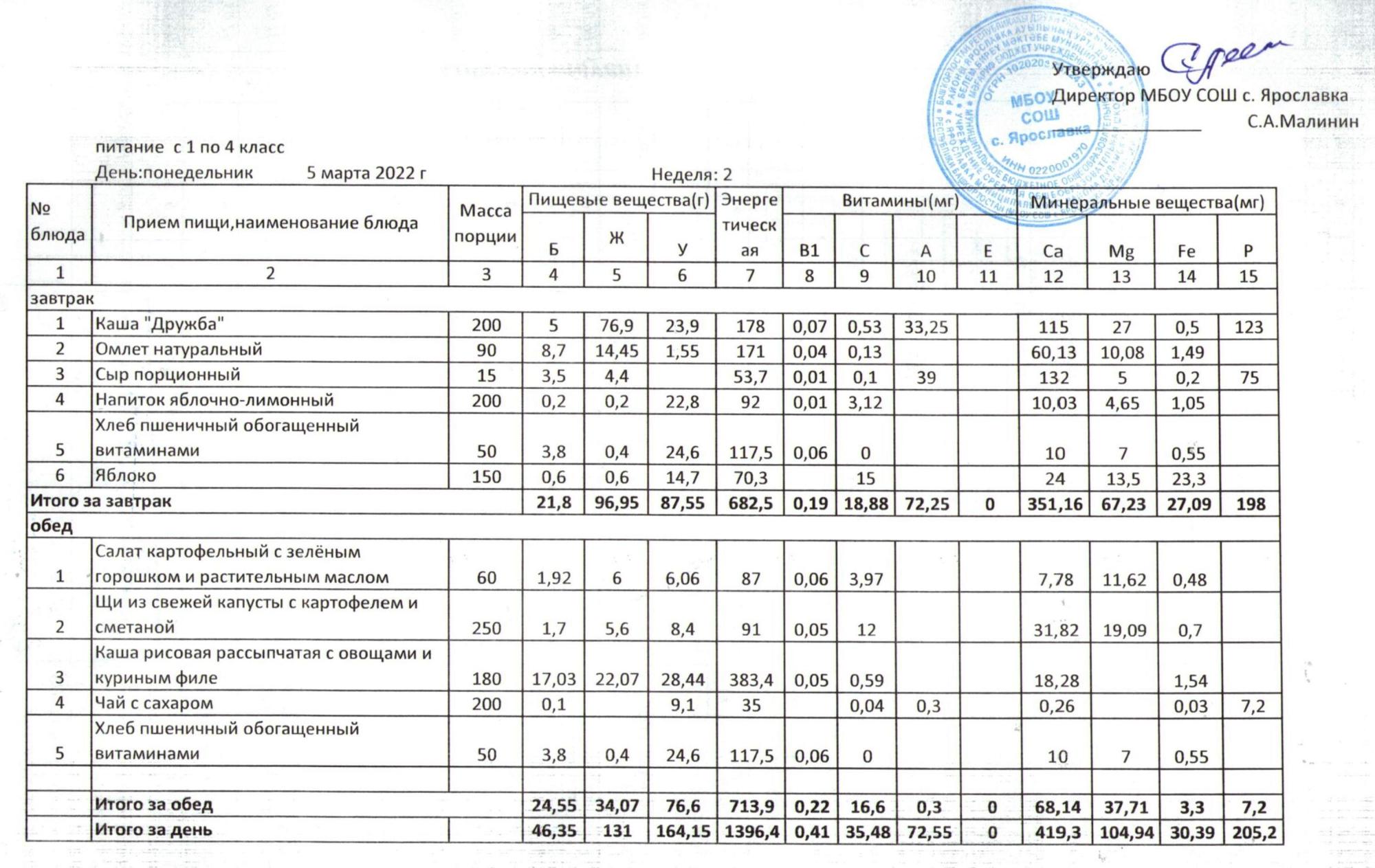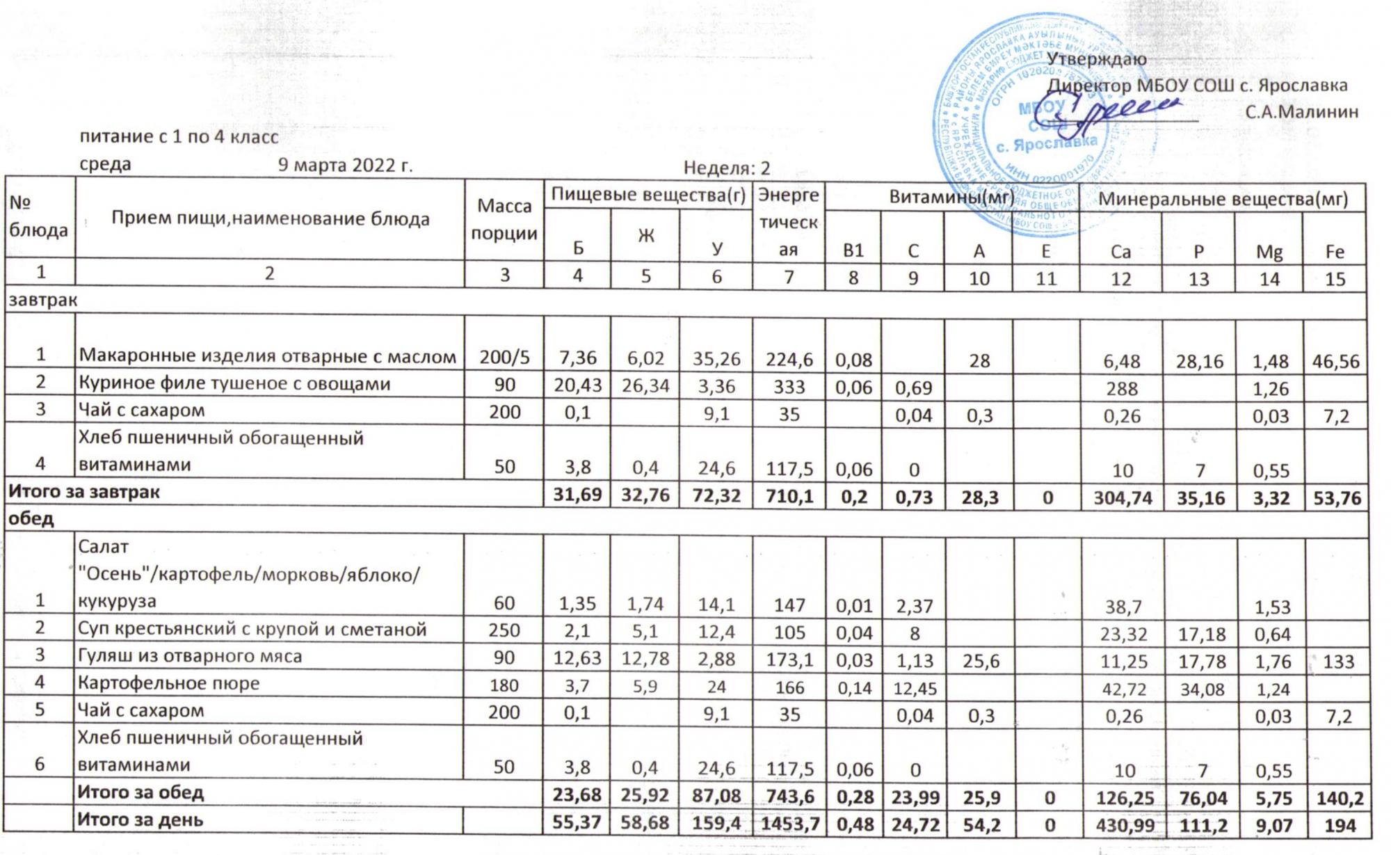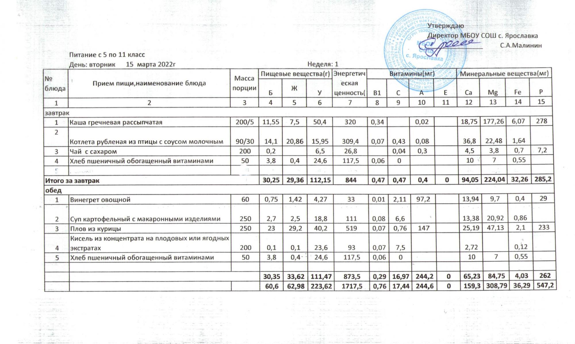 Учебный план ФМБОУ СОШ с.Ярославка в с.Сальёвка