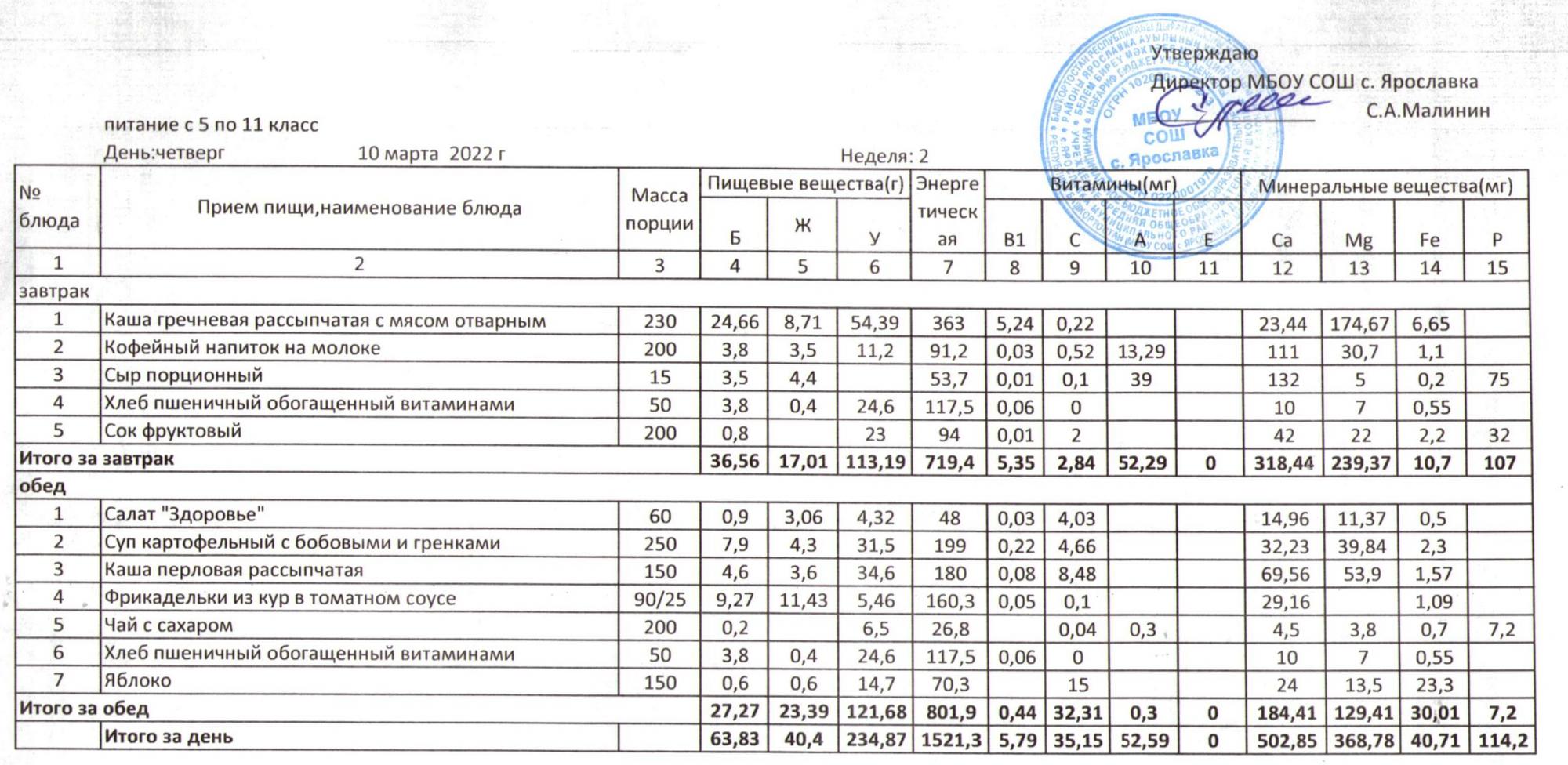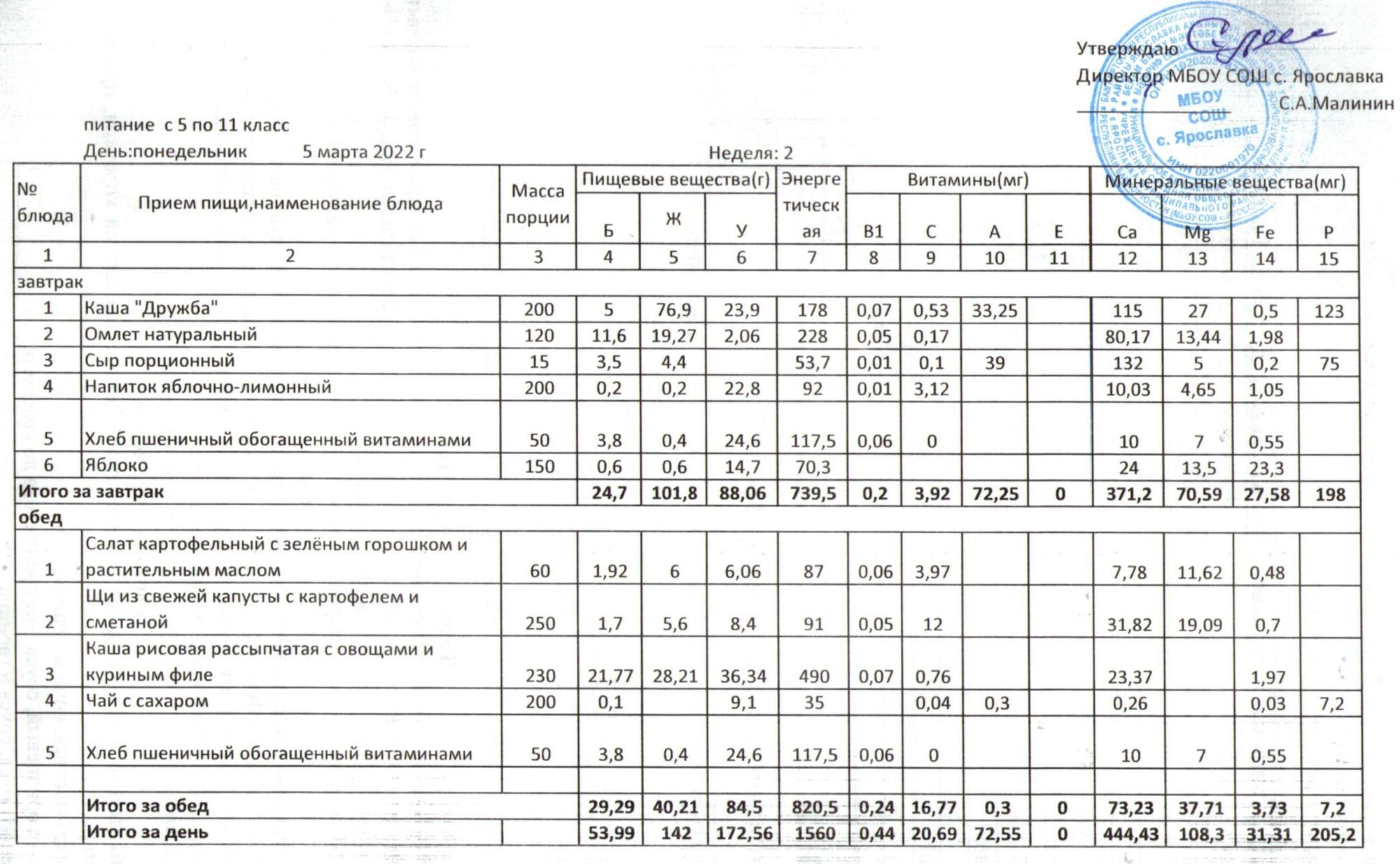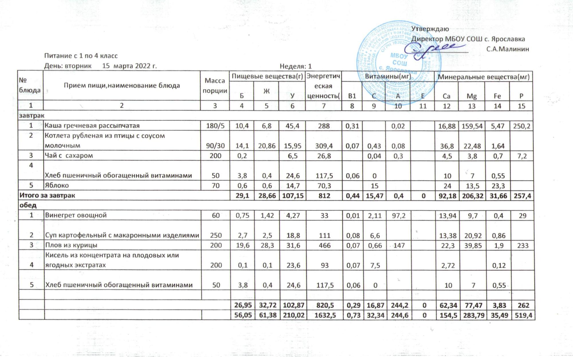 Учебный план ФМБОУ СОШ с.Ярославка в с.Сальёвка