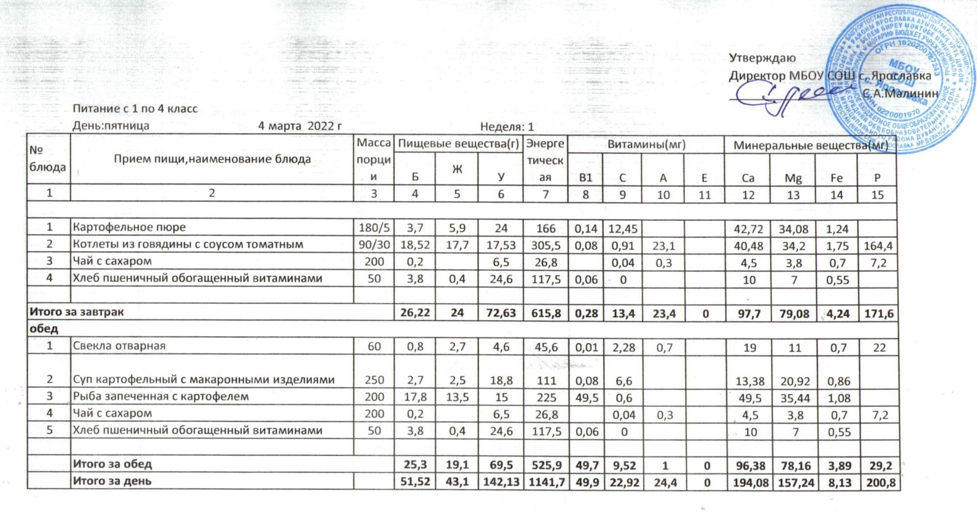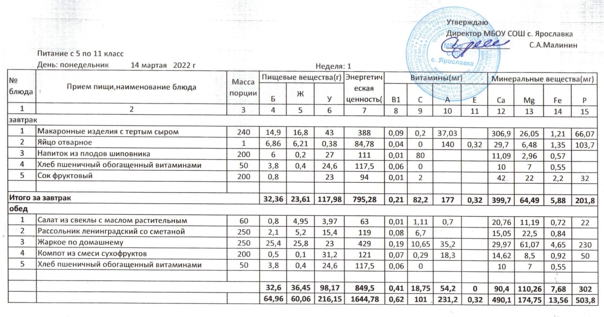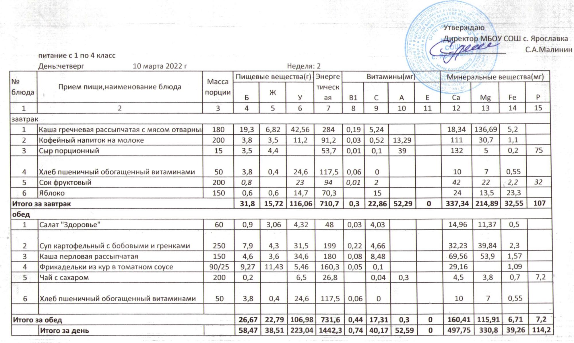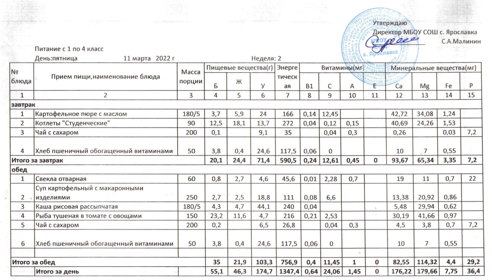 Учебный план ФМБОУ СОШ с.Ярославка в с.Сальёвка