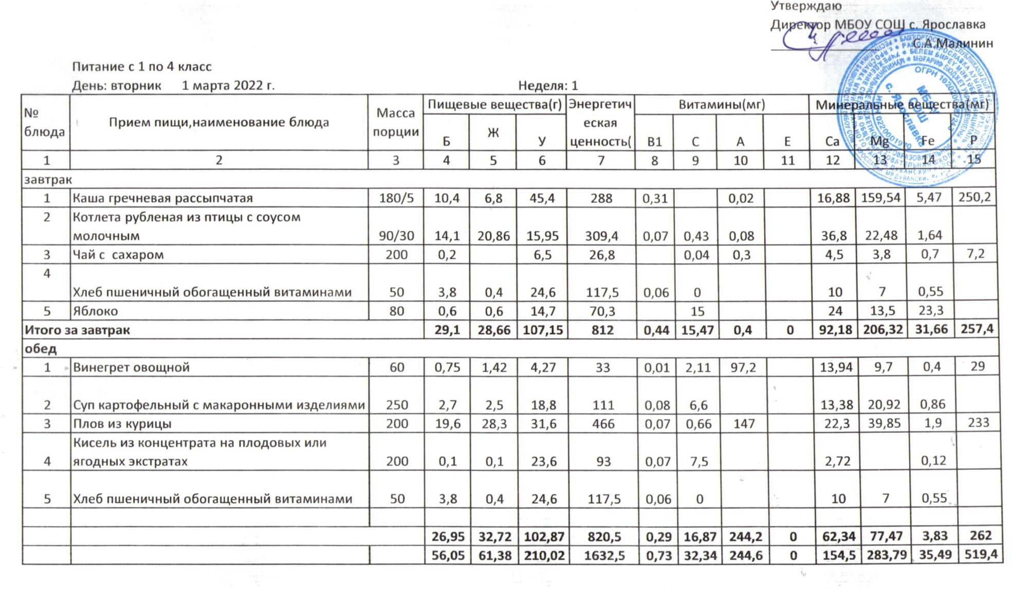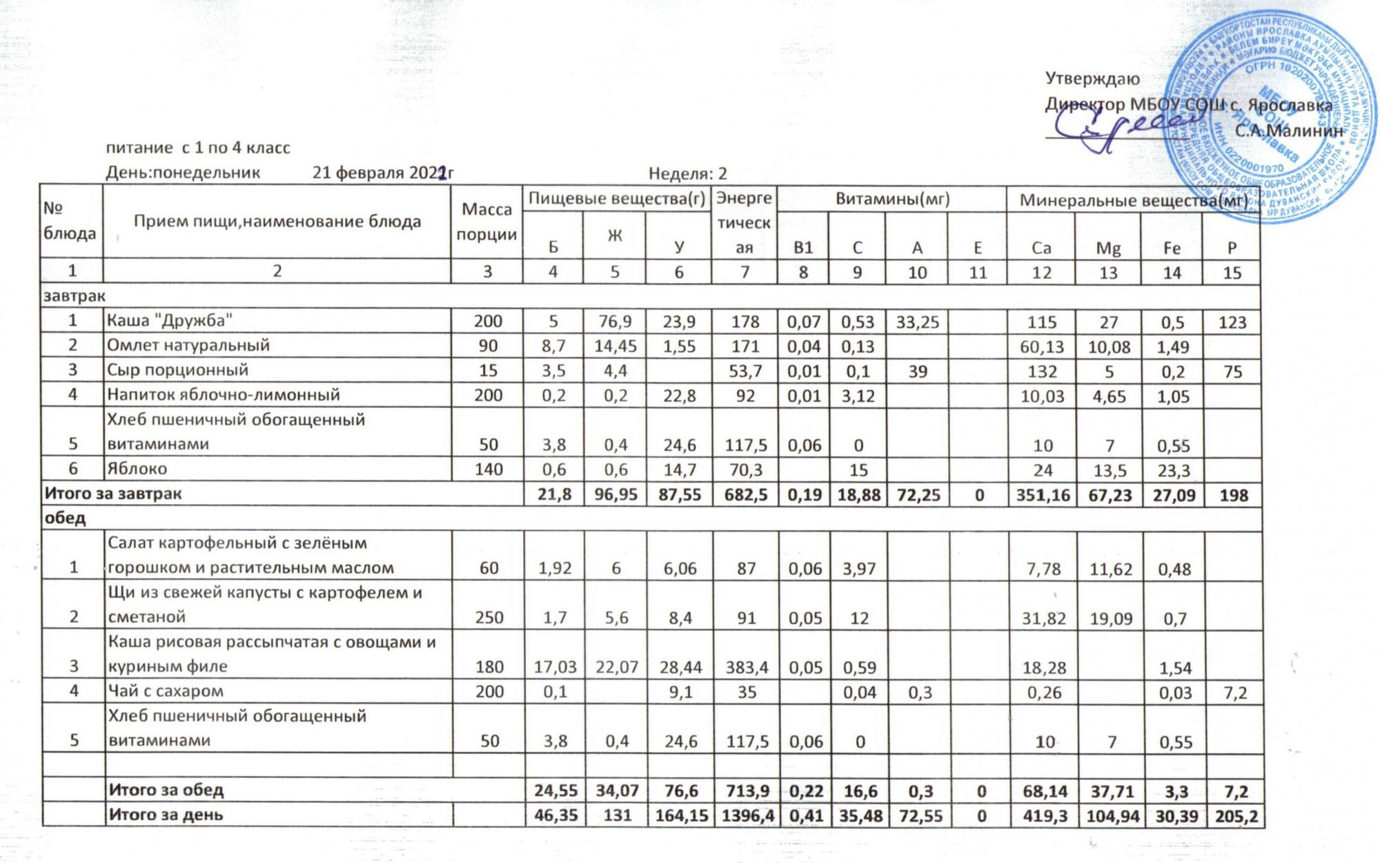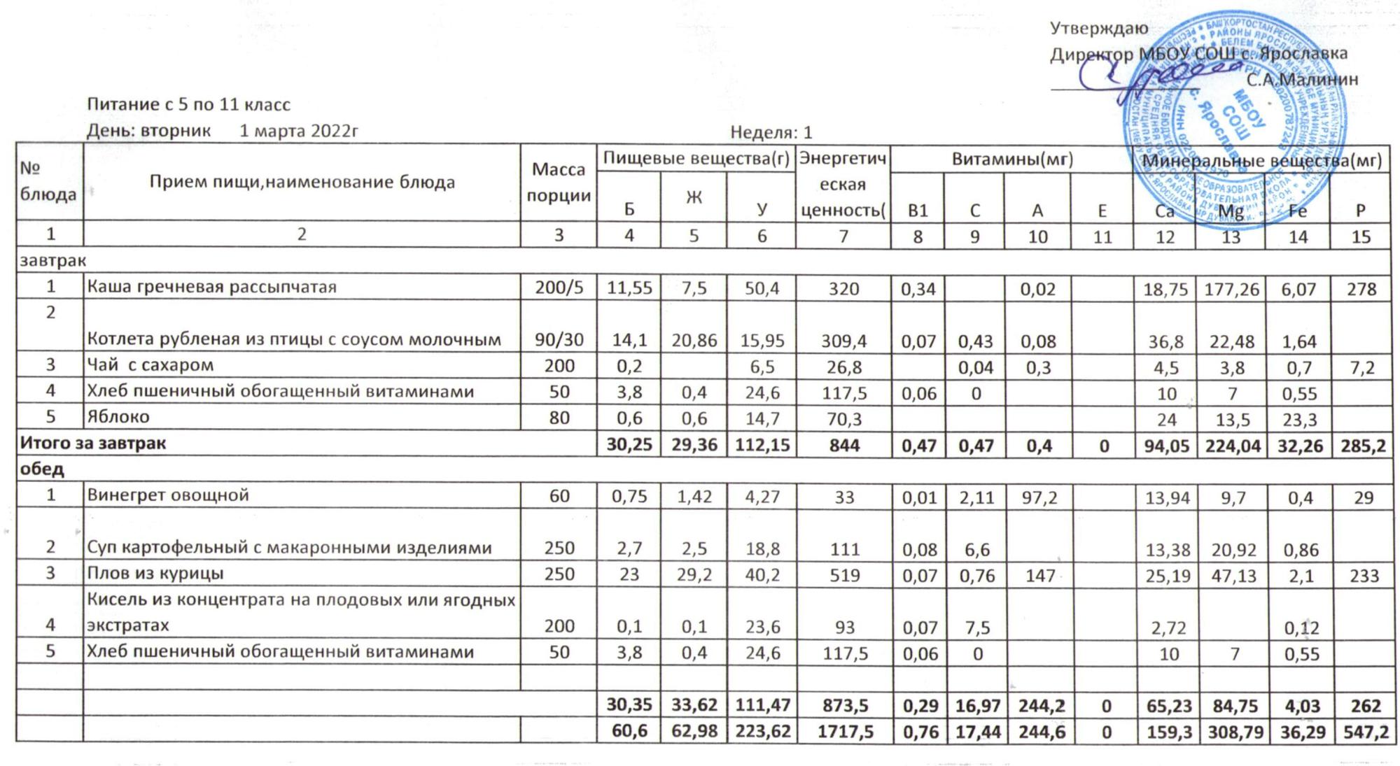 Учебный план ФМБОУ СОШ с.Ярославка в с.Сальёвка