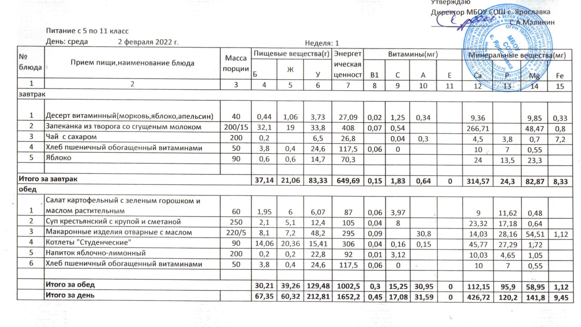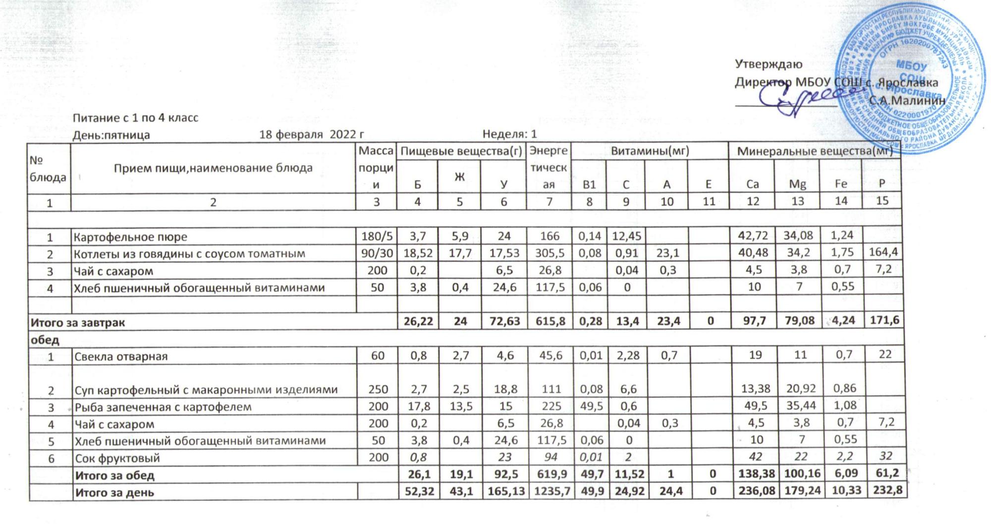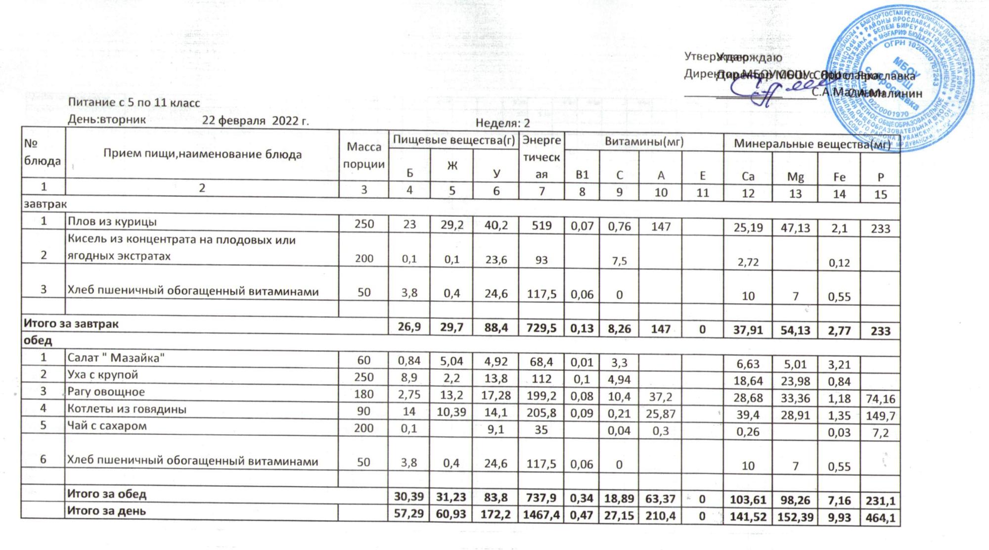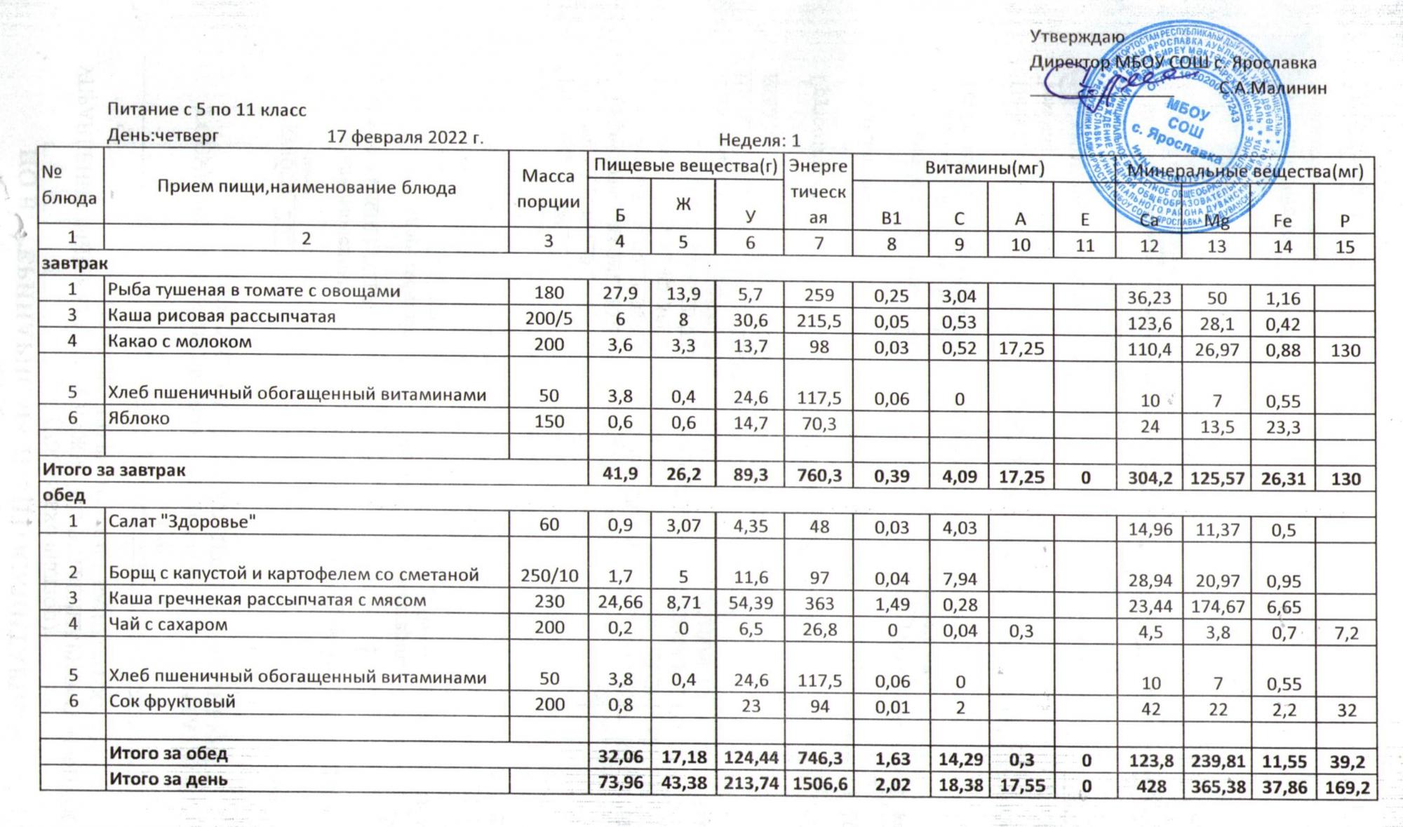Учебный план ФМБОУ СОШ с.Ярославка в с.Сальёвка