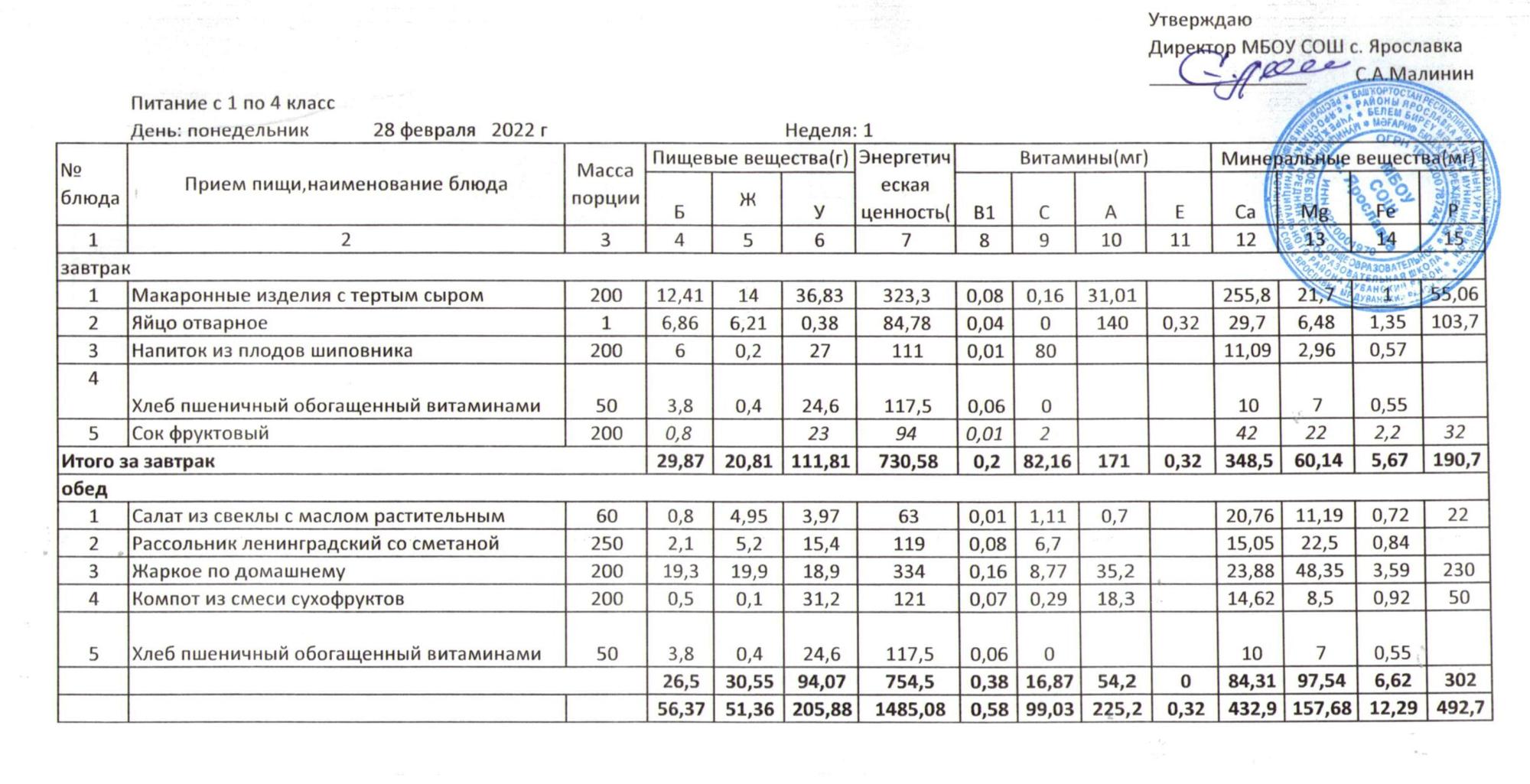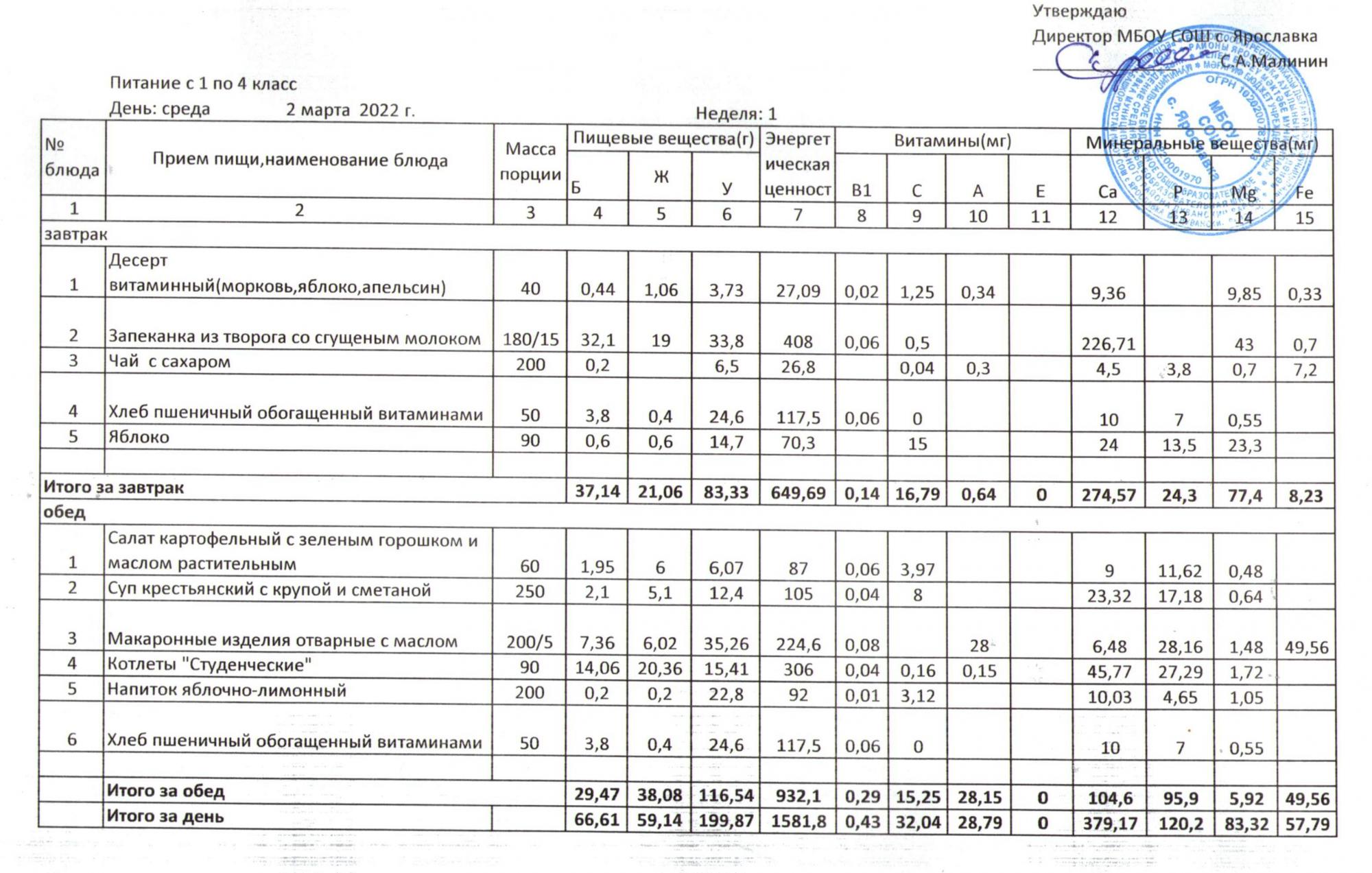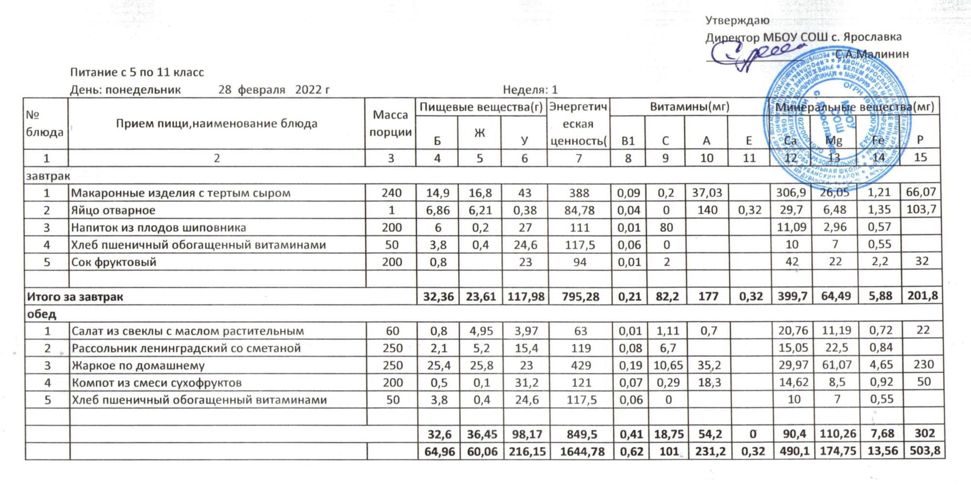 (1 - 9 классы Полный стол)