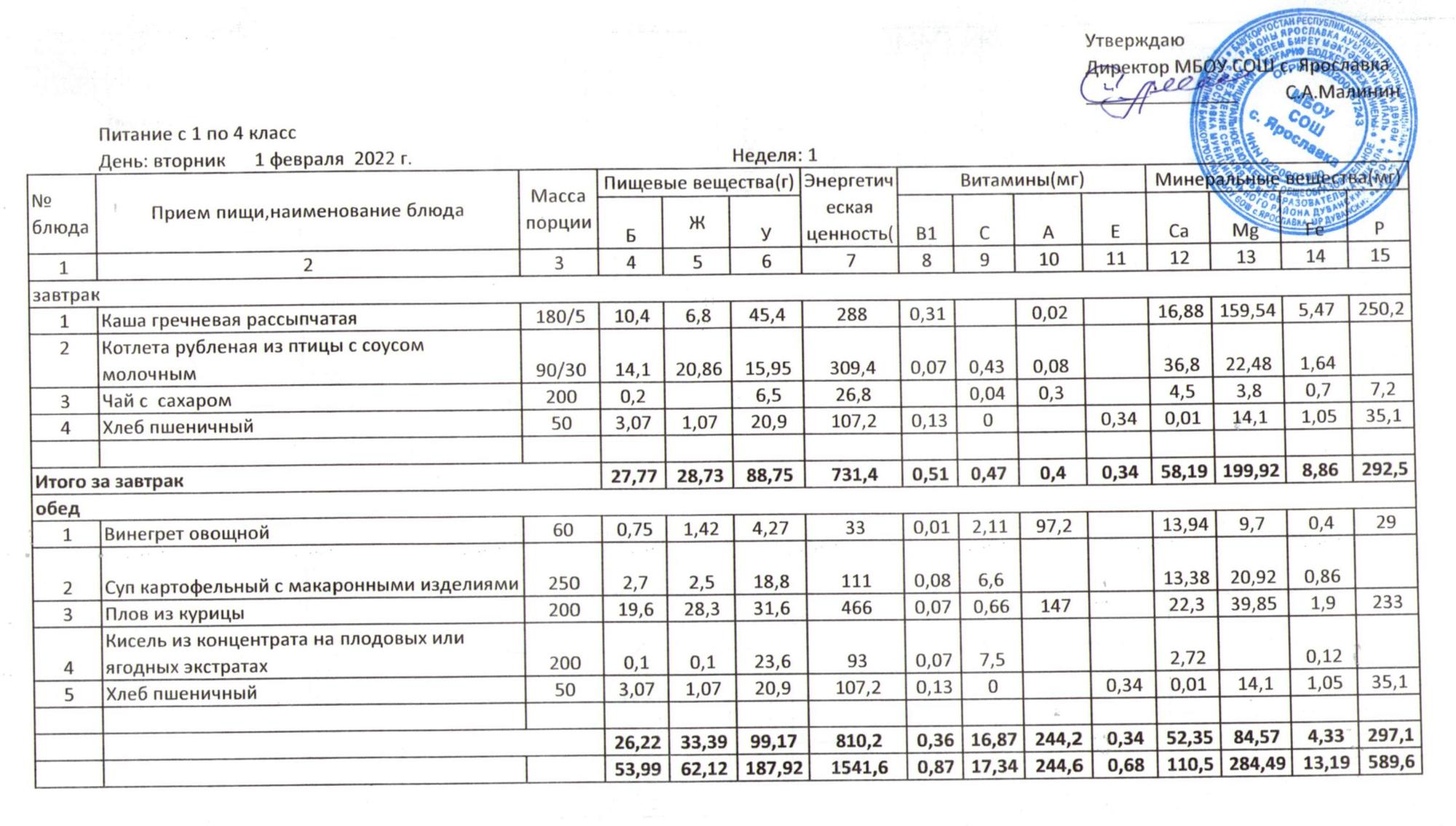 Учебный план ФМБОУ СОШ с.Ярославка в с.Сальёвка