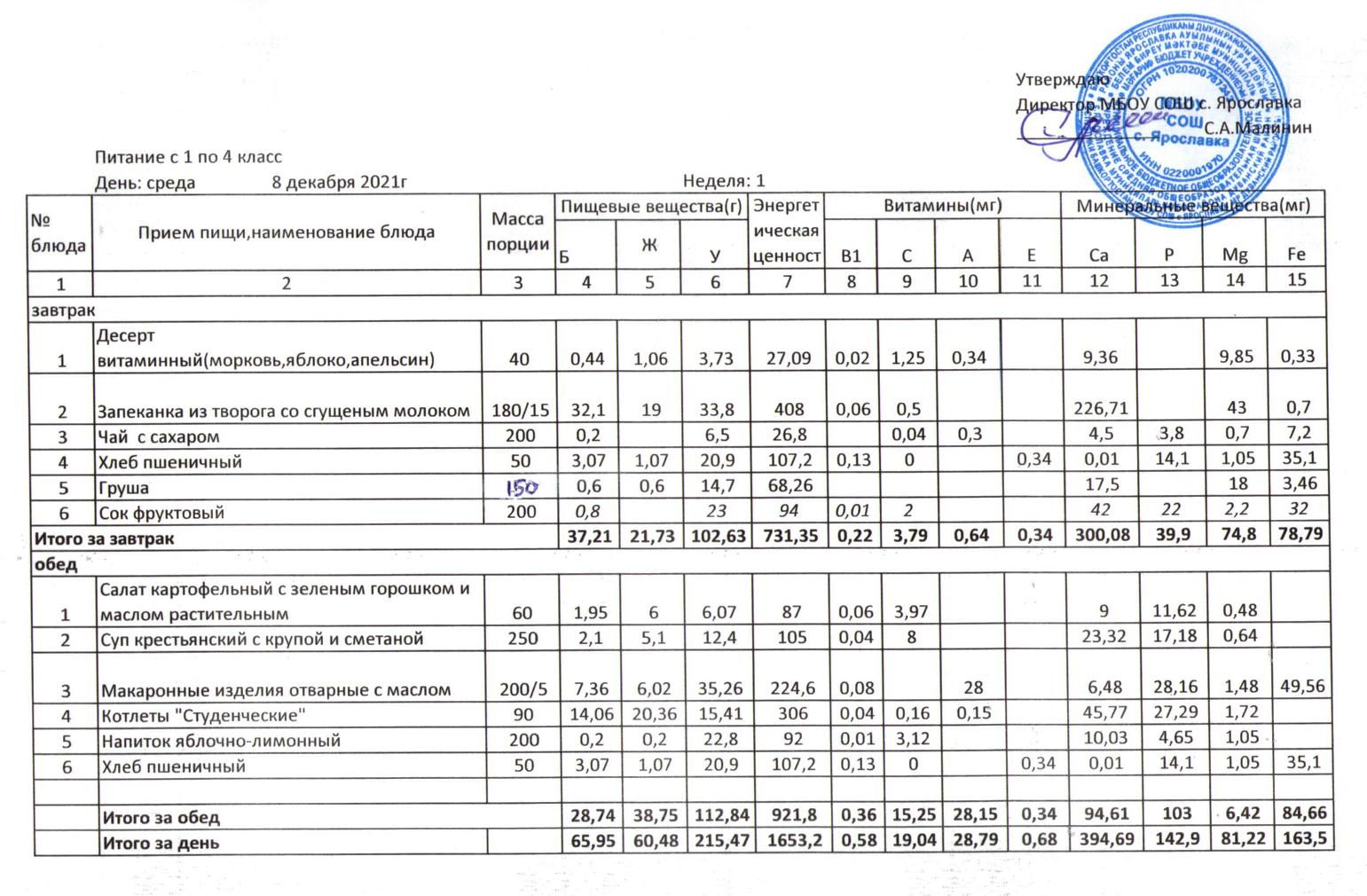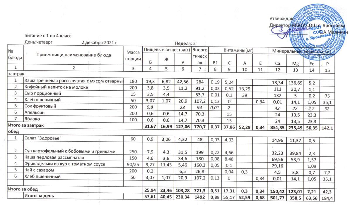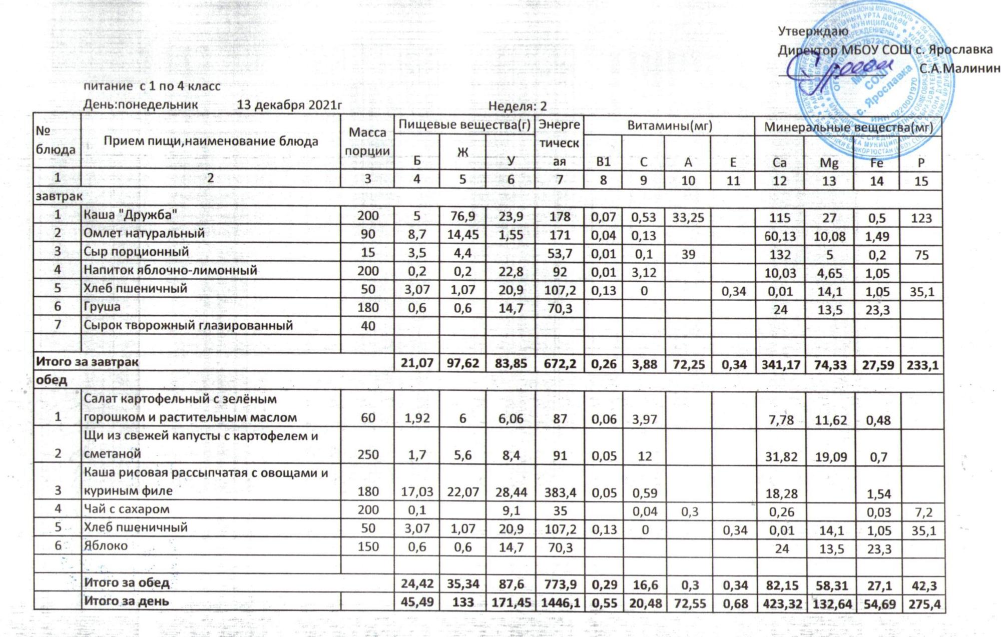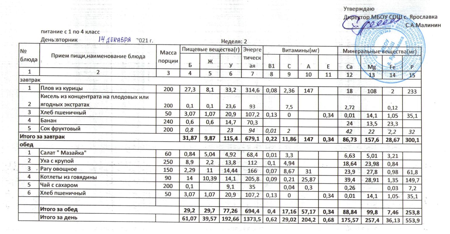 Учебный план ФМБОУ СОШ с.Ярославка в с.Сальёвка