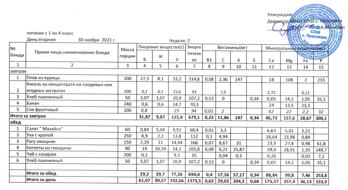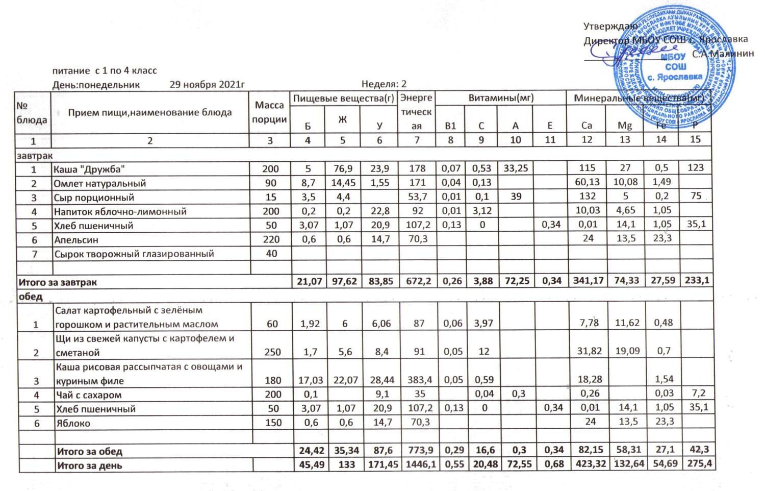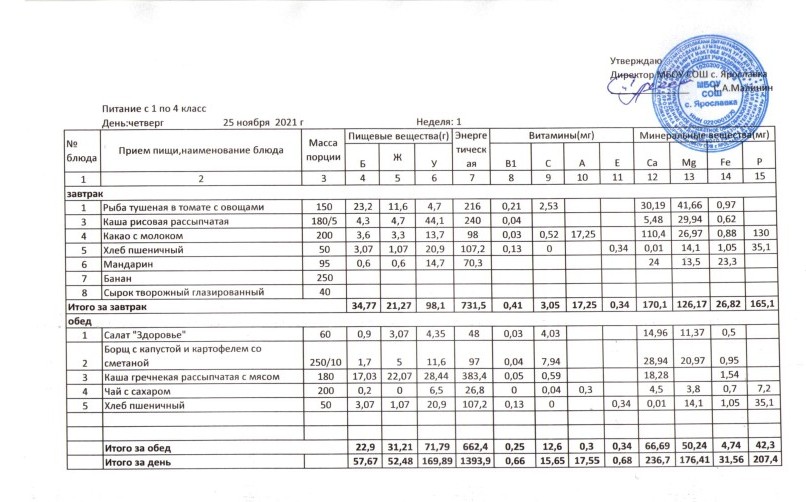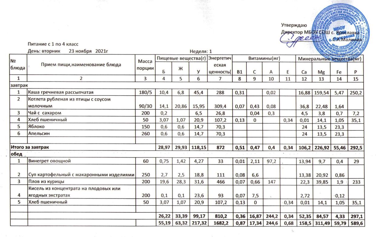 Учебный план ФМБОУ СОШ с.Ярославка в с.Сальёвка