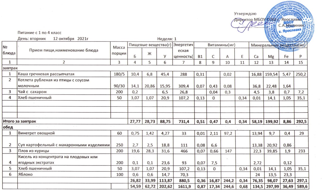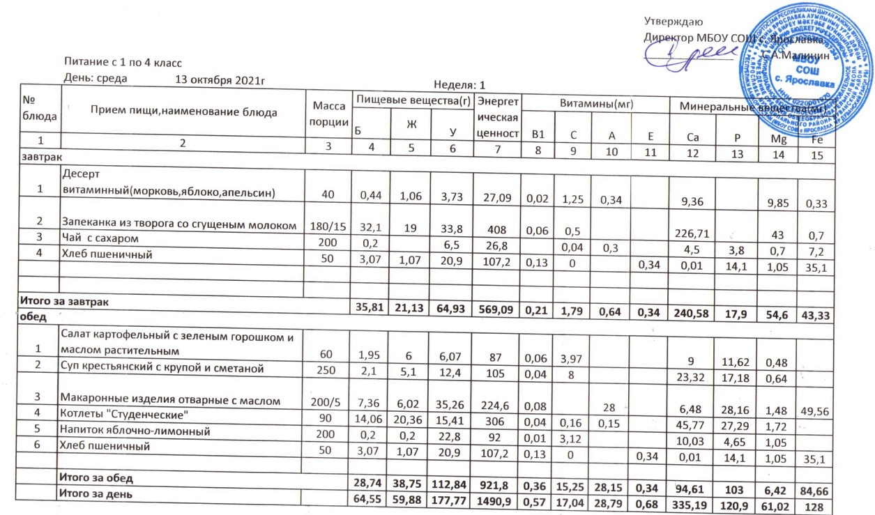 Учебный план ФМБОУ СОШ с.Ярославка в с.Сальёвка