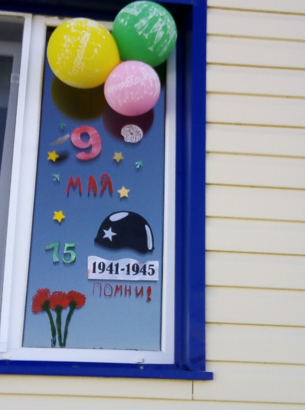 В преддверии Дня Победы, с 30 апреля по 9 мая 2020 года, предлагаем принять участие в акции «Окна Победы». Для этого необходимо украсить окна своего дома, квартиры праздничными поздравлениями и тематическими трафаретами. Также, по желанию, можно разместить портрет члена семьи, участвовавшего в Великой Отечественной войне, на стекле, написав даты сражений, в которых он принимал участие, краткую информацию его жизни.