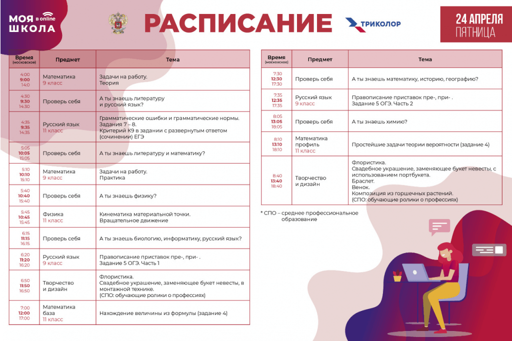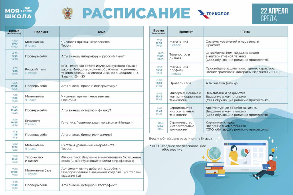 22 апреля Министерство просвещения в партнёрстве с мультиплатформенным оператором цифровой среды «Триколор» запускает образовательный телеканал «МОЯ ШКОЛА в online», который поможет старшеклассникам быстро и качественно подготовиться к экзаменам этого года.