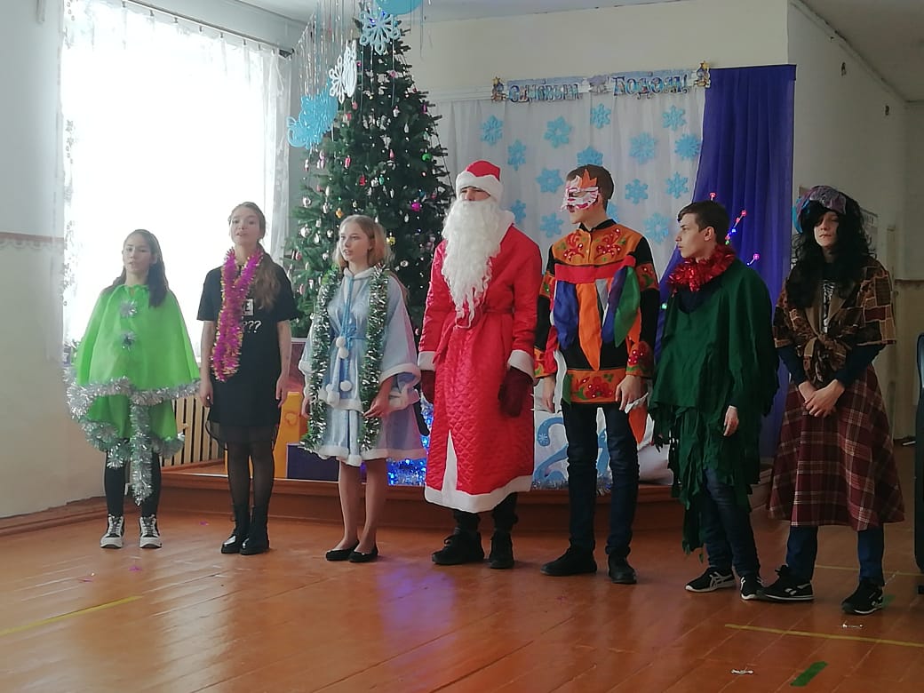 В преддверии Нового года в нашей школе прошли новогодние ёлки для учащихся. Ученики пришли на елку, нарядившись в карнавальные костюмы. Ребятишки расхаживали в нарядах принцесс, ковбоев, бэтменов и других сказочных героев. Их ждала новогодняя елка, а развлекали детей сказочные персонажи: дед Мороз, Снегурочка.